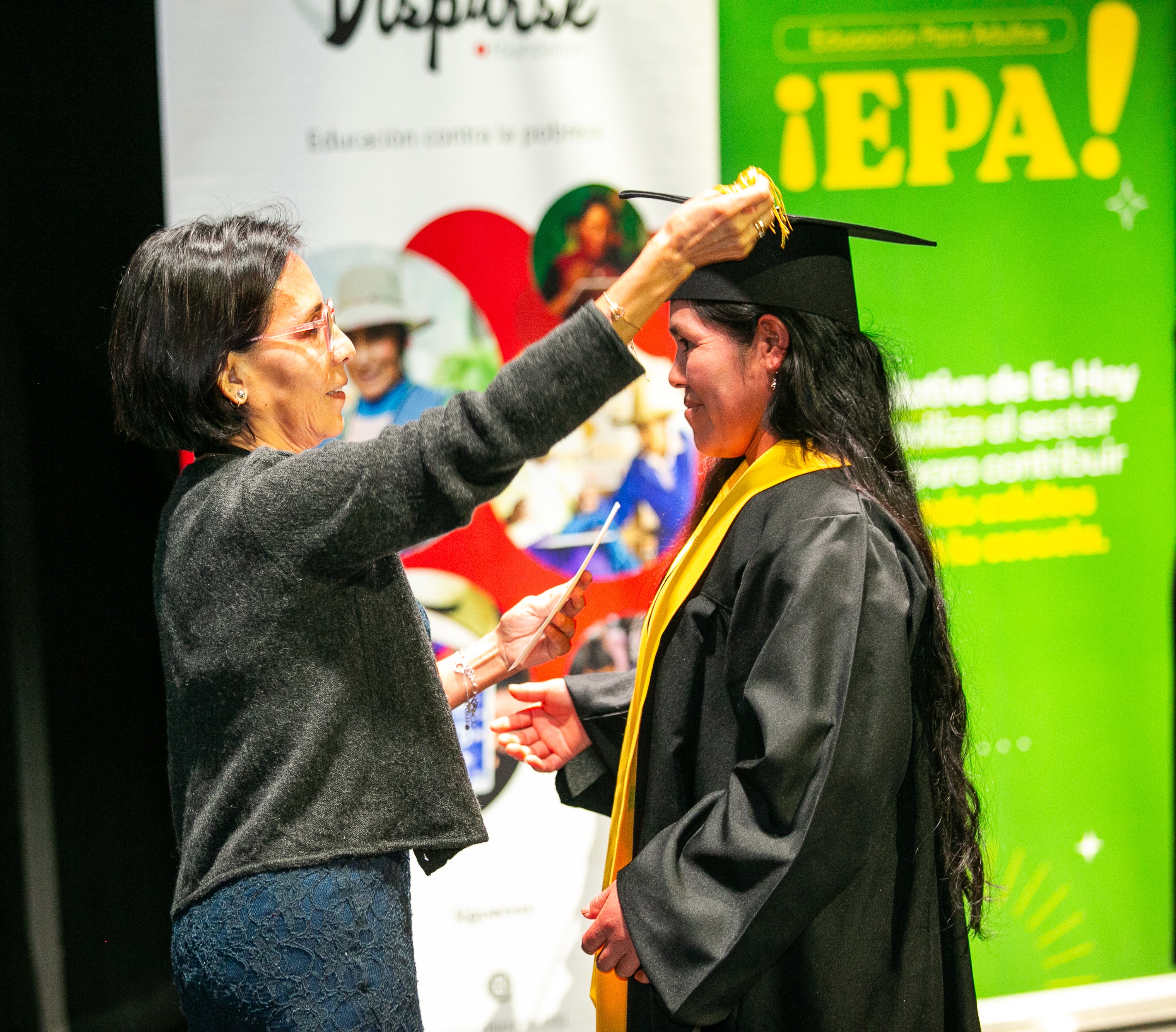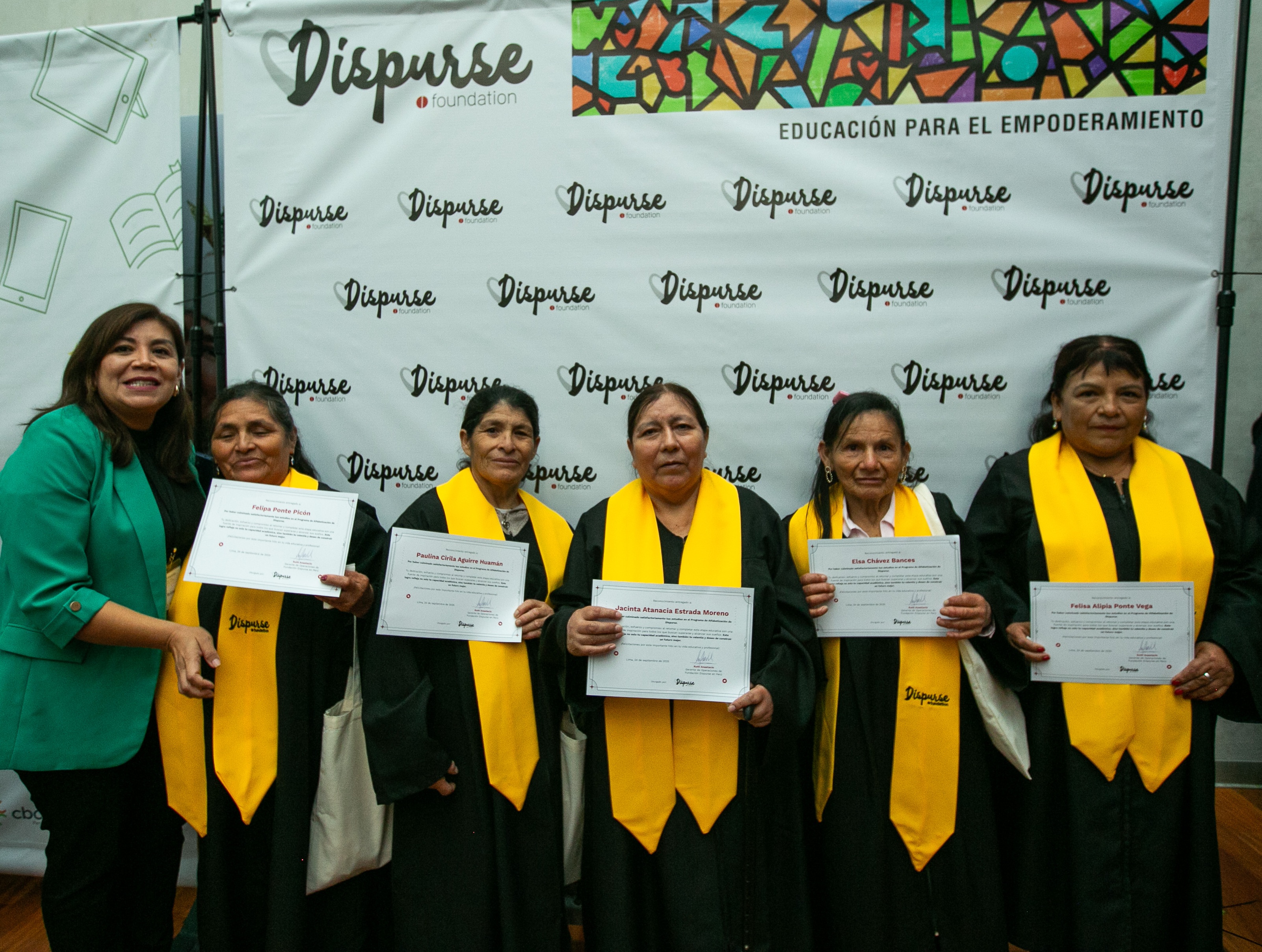 During the event, a symbolic graduation ceremony was held for 55 students from different regions of the country, recognizing their efforts to resume and complete their educational pathways. Of this group, 16 students are part of programs implemented by Dispurse Foundation in Cusco, Cajamarca, Pasco, Apurímac and Lima.